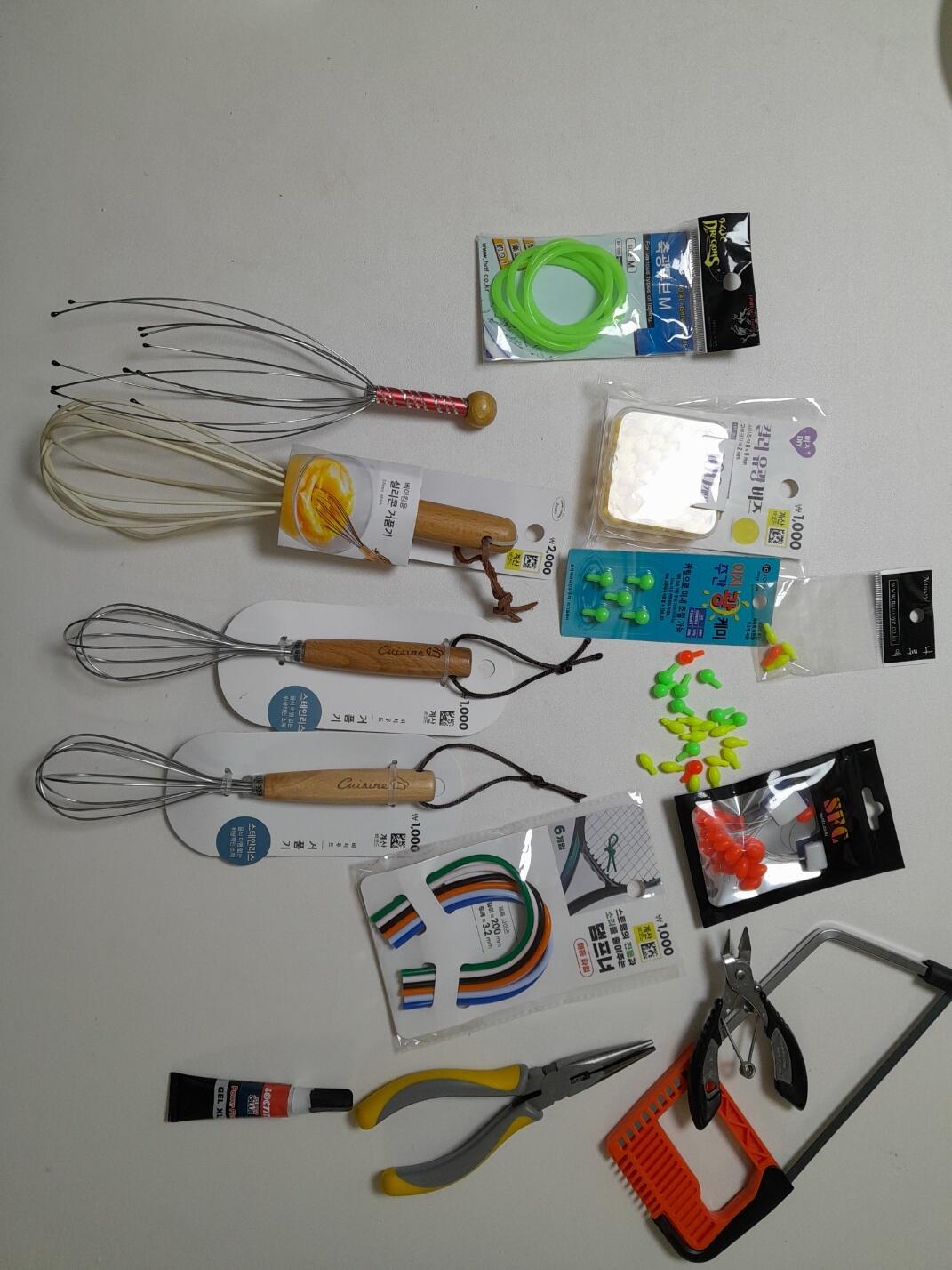 남는 케미 , 측광튜브 , 다이소튜브 , 노란비즈 , 알리발찌멈춤고무 대짜