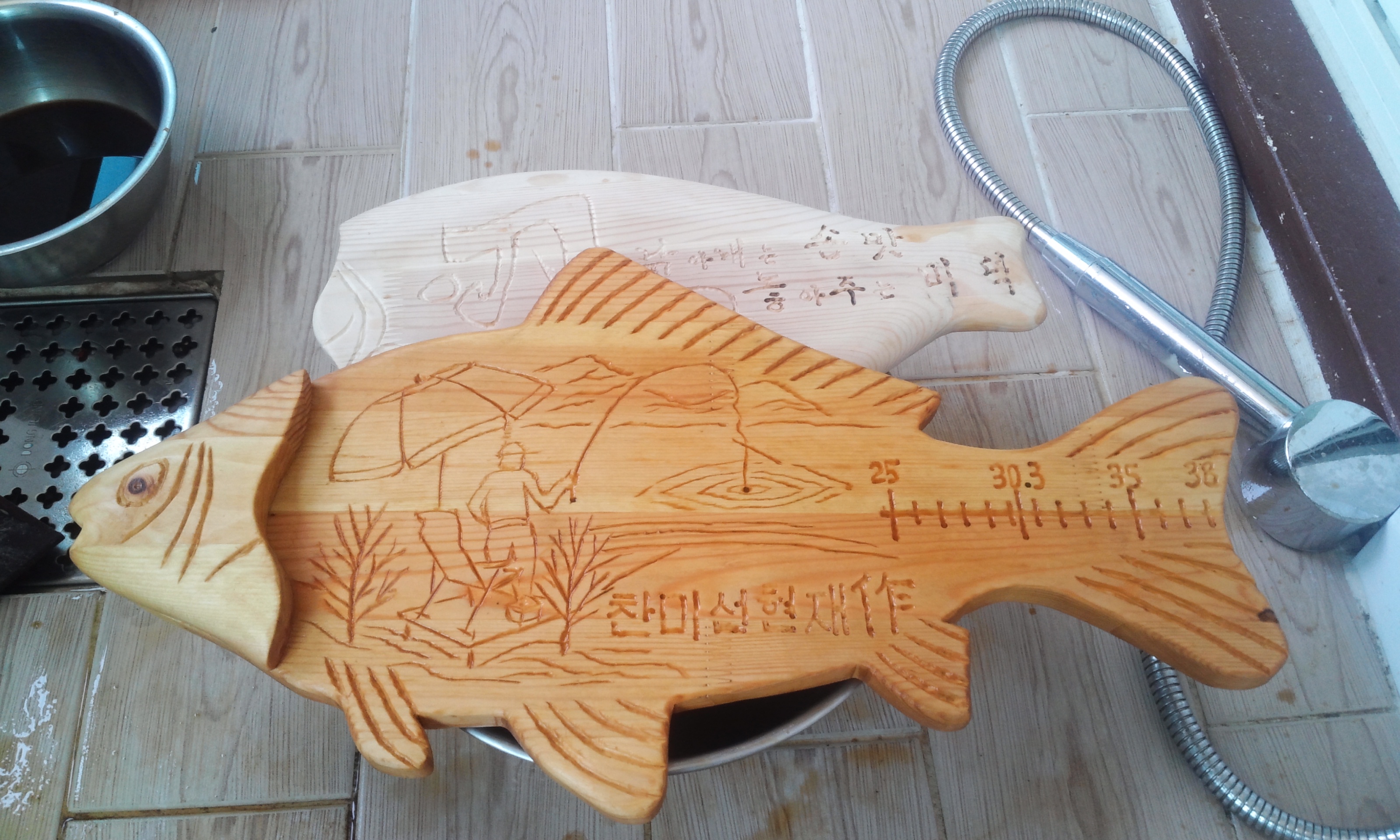 조각이 완료된 것을 착색을 하였습니다.