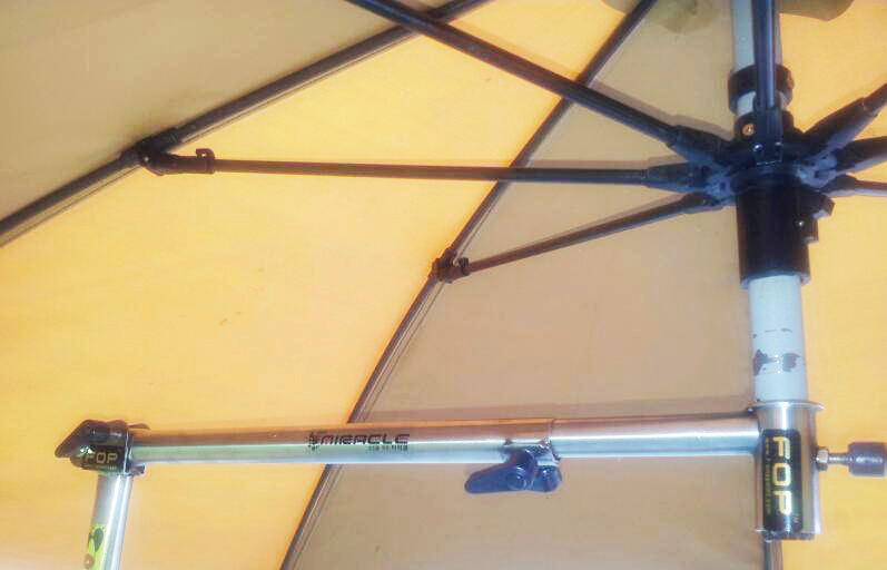 좌대 다리에 파라솔꽂이를 부착 (앞 뒤 좌우 원하는 위치에 부착가능)