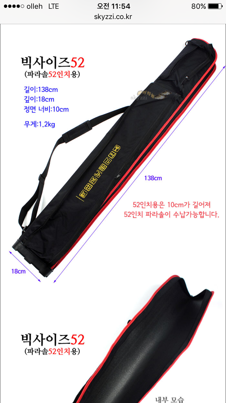 실제로 구매 했다가 트캠 파라솔 가방에 수납이 되어서 반품 했습니다.