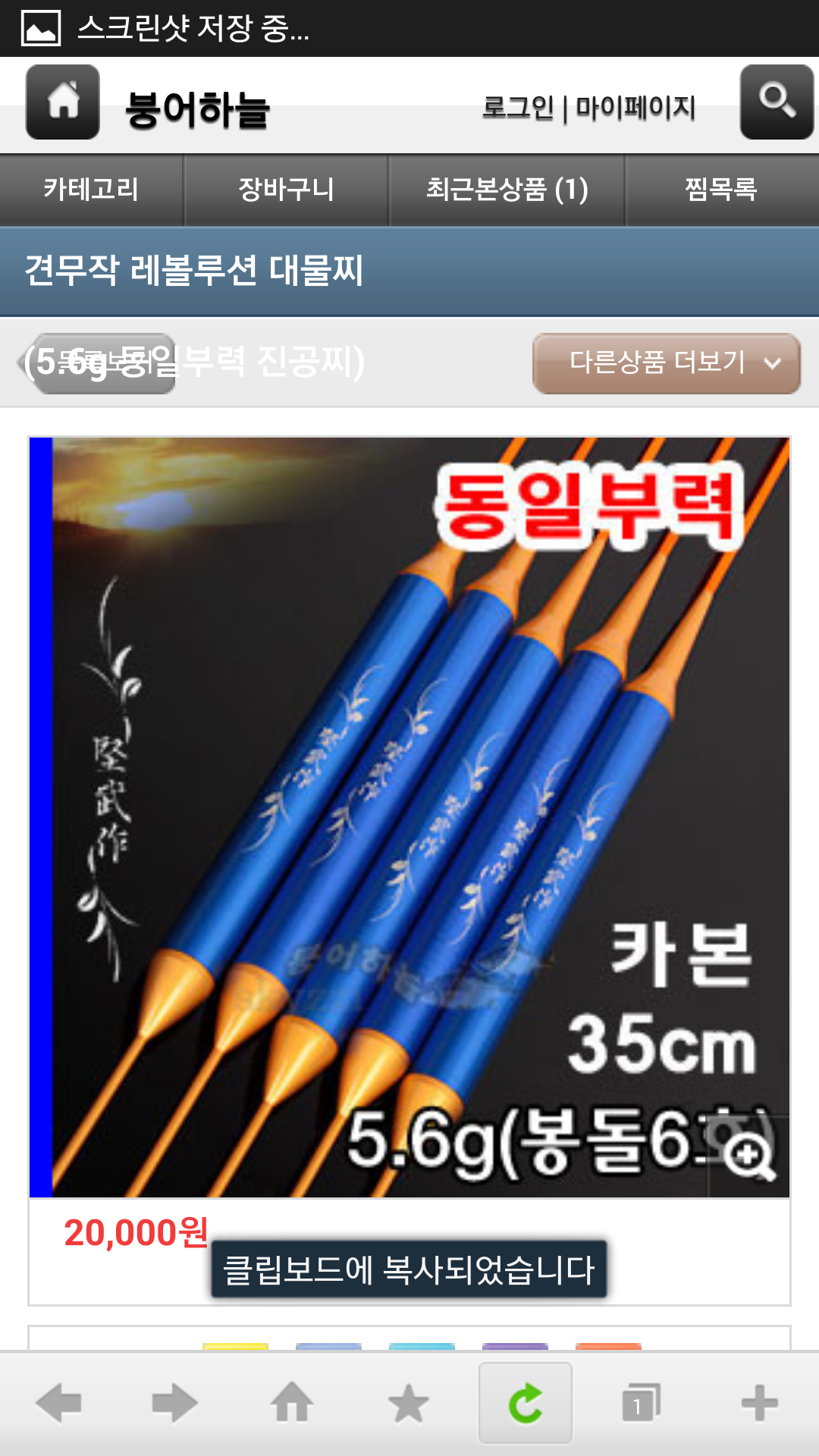 붕어하늘에 판매하는 견무작찌 어떤지요 부력이 고리봉돌5호인가요? 사용하시는 횐님들 후기 부탁드려요