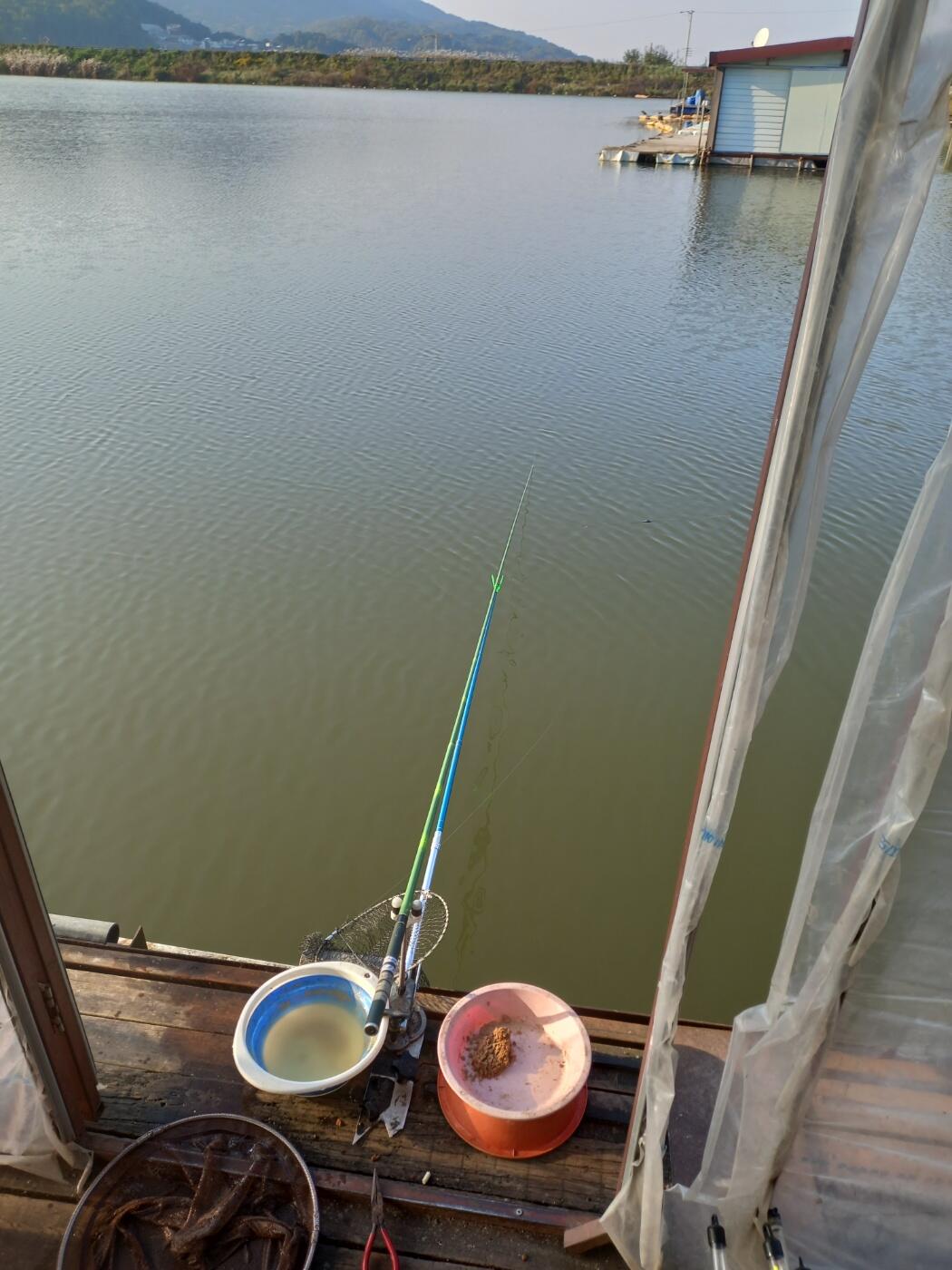 관리소앞 잔교 적당한 곳에 자리를 잡고는 28대를 세팅을 했습니다,,,,