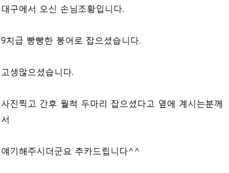 앞으로도 발빠른 조황정보 부탁드리며 사업 번창하세요~^^