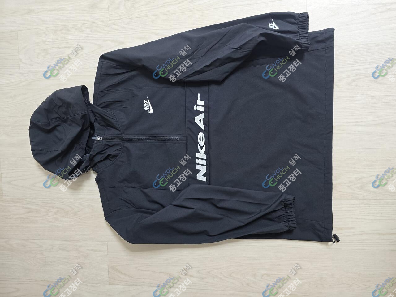 나이키 스타일 아노락 바람막이 바지 셋트 105 새거 입니다 바람막이 바지 같은 두툼한 바람막이 재질로 되어 잇어요 셋트 택포 7만원