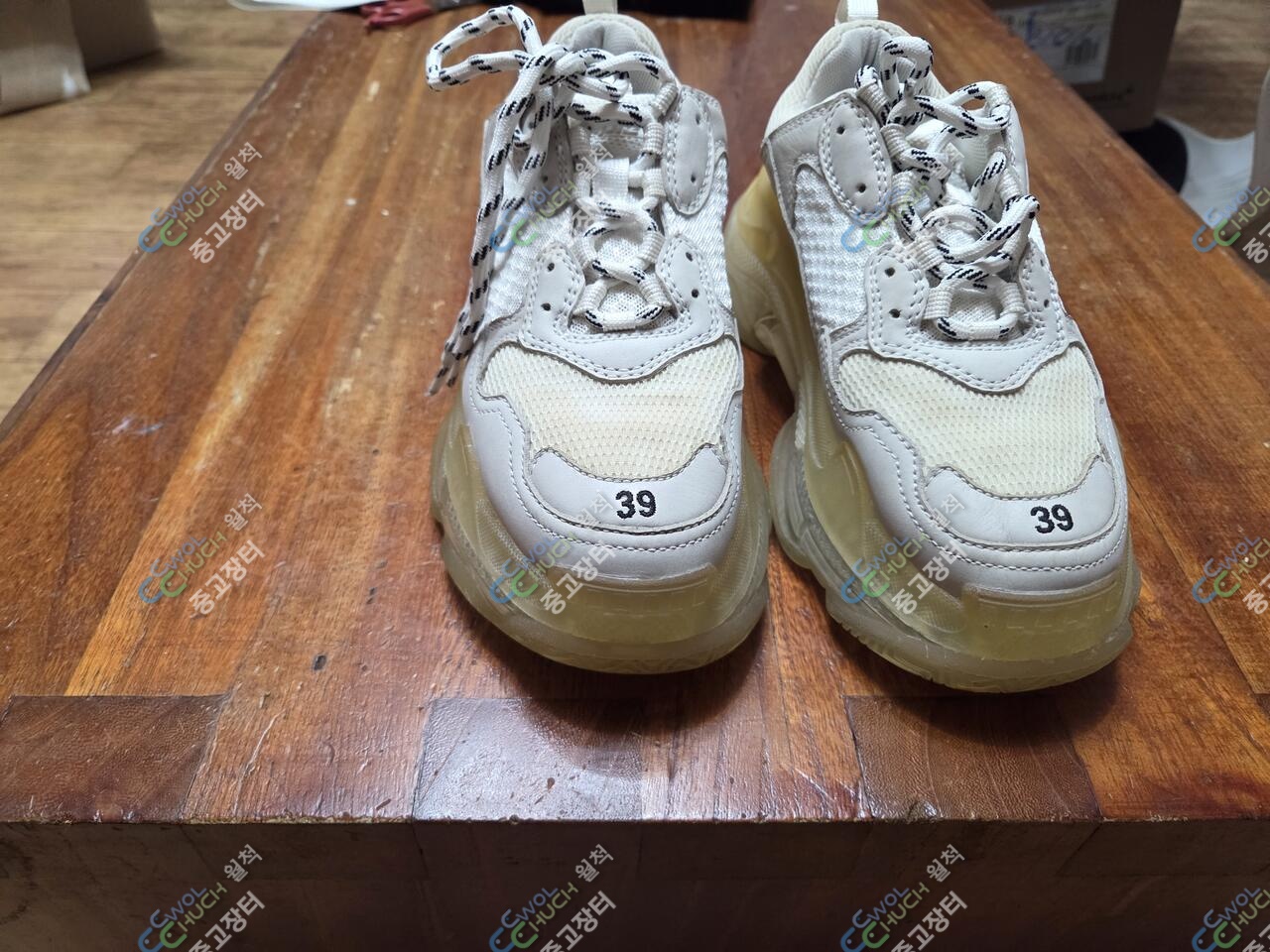 아들이 고모한테 선물 받아 몇 번 못 신고 발이 커져 보관하던 발렌시자아 트리플 s 39 팝니다. 한국 싸이즈 260 입니다. 판매가 15만 입니다.