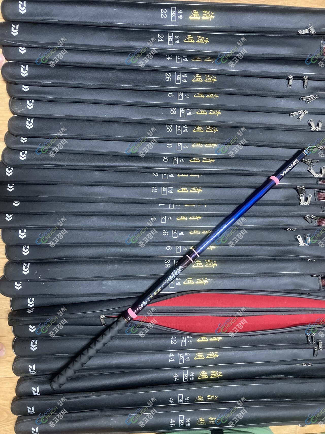 가방 통채로 일괄 160만에 팝니다 1번초리대 월산초리대이고 낚시집 제거되어있고 줄감개끼워저있습니다.