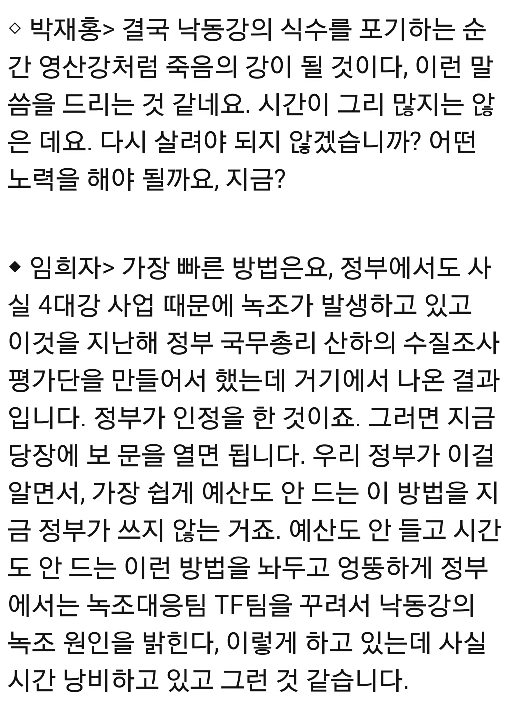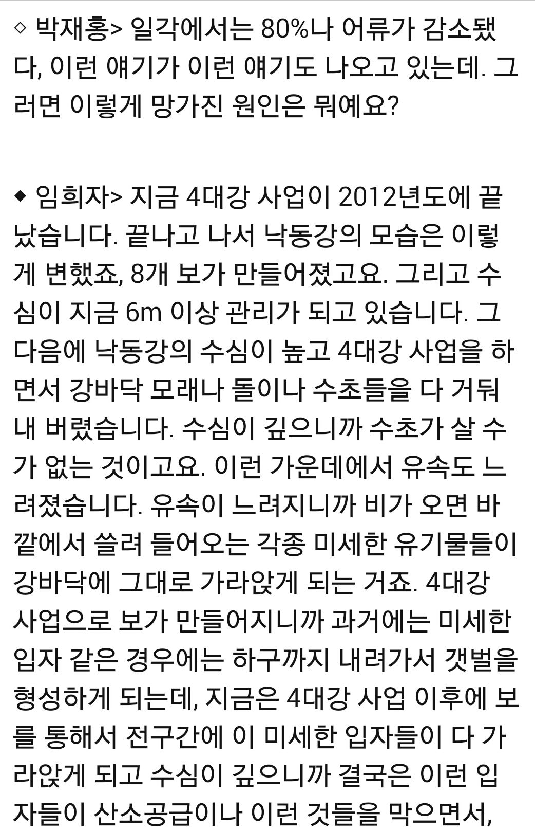 이 정도 일 줄이야. 이제 답이 없네여. 사대강 아니 오대강 국민들이 마실 물 어디로 갔나여. 식수낸 부족국으루 올려야 할 듯 싶네여.