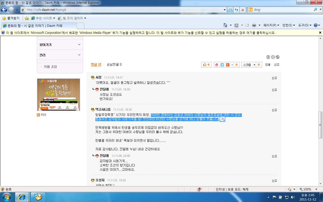이글의 본문에다가 님이 첫글을 올린 내용입니다.