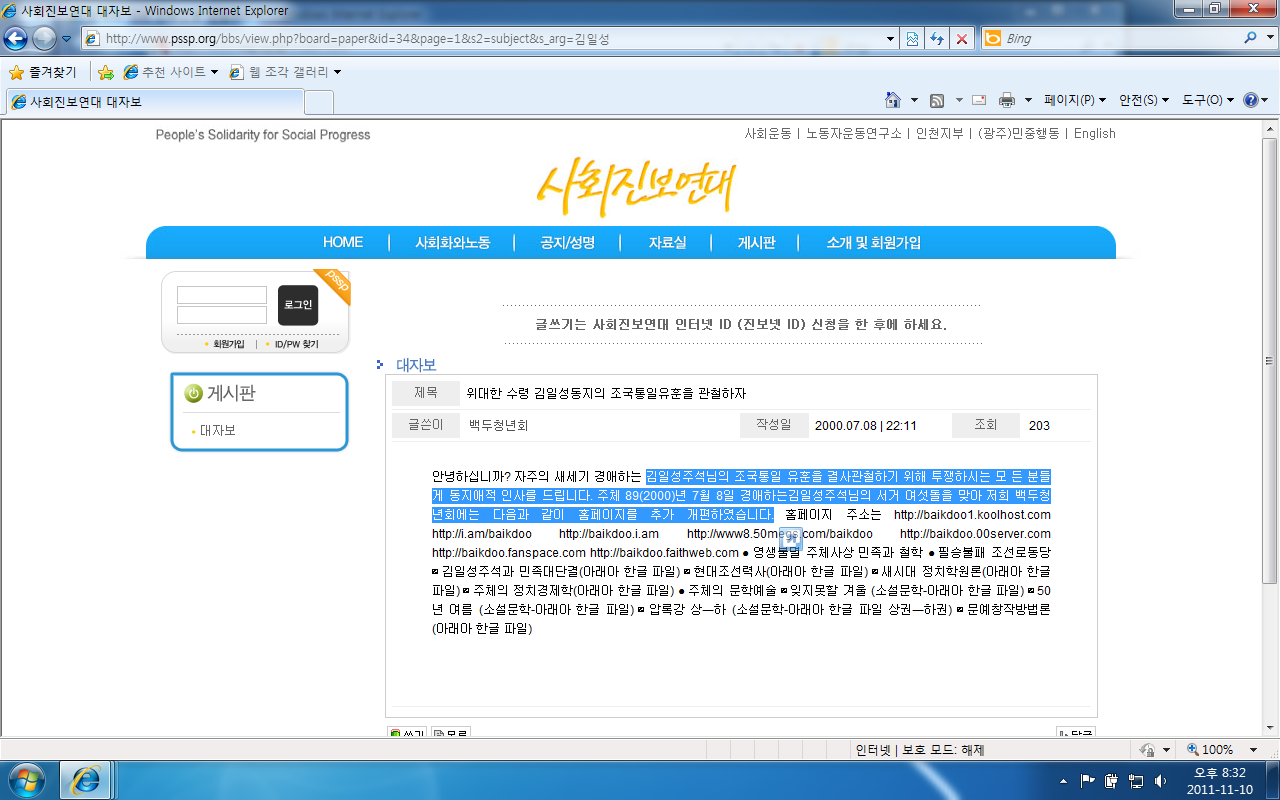 소위 말하는 진보단체들 홈페이지에 관련 링크, 링크를 통해 찾아냈습니다.
