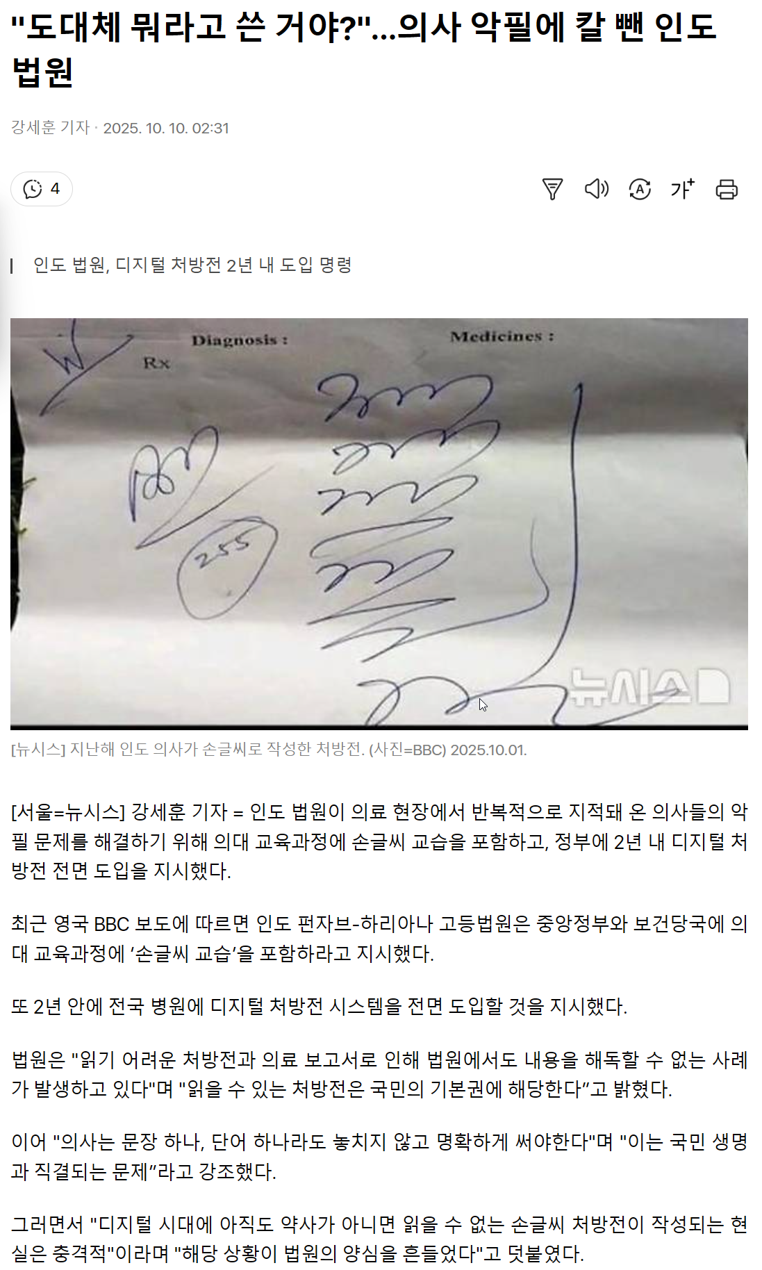 목록 이전글다음글 의사들의 알아보기 힘든 처방전 댓글 13 인쇄 신고 마늘파종시기 IP : 291dcbbe691e481 날짜 : 2025-10-11 12:37 조회 : 4289 본문+댓글추천 : 2 의사들 악필은 만국 공통인가요?ㅎㅎ우리나라도 만만치 않을것 같은데ㅎㅎ 추천 2 1등! 일산뜰보이25-10-11 12:53 IP : 7cb1ea56c64eaa3 볼펜 새로 사면 .. 잘 써지나? 종이에 대고 나도 저렇게 하곤 하지요. 신고하기 추천 0 볼펜 새로 사면 .. 잘 써지나? 종이에 대고 나도 저렇게 하곤 하지요. 2등! ♡제리♡25-10-11 14:41 IP : 667db677b89038c 저게 글씨라는게 ㅋ넘 신기하네요~ 신고하기 추천 0 저게 글씨라는게 ㅋ넘 신기하네요~ 3등! 귀령골조사25-10-11 18:26 IP : 318af8519ae282a 의새 들은 전세계가 비슷 한가? 신고하기 추천 0 의새 들은 전세계가 비슷 한가? 42525-10-11 18:57 IP : 5e71582972c21b4 지그들은 알어 먹것제? 신고하기 추천 0 지그들은 알어 먹것제? 담여수25-10-11 19:06 IP : 59999c4330baf39 혹시 의료사고 분쟁 생겨도 빠져나갈 구멍 만드느라. 신고하기 추천 0 혹시 의료사고 분쟁 생겨도 빠져나갈 구멍 만드느라. 맘이설레는밤25-10-11 19:49 IP : a4457a1c5655a8a 의사 ㅡ약사ㅡ 지들만의 암호 ? 신고하기 추천 0 의사 ㅡ약사ㅡ 지들만의 암호 ? 어인魚人25-10-11 20:52 IP : 4aee77519b4d7f5 모스부호ㅡㅡ 신고하기 추천 0 모스부호ㅡㅡ 또다시25-10-11 21:38 IP : 608883d24b68554 겉멋이 들어서... 신고하기 추천 0 겉멋이 들어서... 하드락25-10-12 08:06 IP : 6d0e74a58c245e2 글씨는 맞는가 신고하기 추천 0 글씨는 맞는가 실바람25-10-12 21:59 IP : 265b651e6b76ba5 그림 예술 작품이네요 신고하기 추천 0 그림 예술 작품이네요 rose25-10-13 12:59 IP : 7dc757ad50f0b36 ㅠㅠ 신고하기 추천 0 ㅠㅠ 피트한잔25-10-13 13:10 IP : 9b8f7c6318ecc2b ㅋㅋㅋㅋ 저걸 알아보는 간호사도 대단... 신고하기 추천 0 ㅋㅋㅋㅋ 저걸 알아보는 간호사도 대단... 월조사6625-10-13 18:34 IP : d7ccb81896c347e 저걸 알아 본다고~?? 신고하기 추천 0 저걸 알아 본다고~?? 목록 이전글다음글 하단에 목록보기