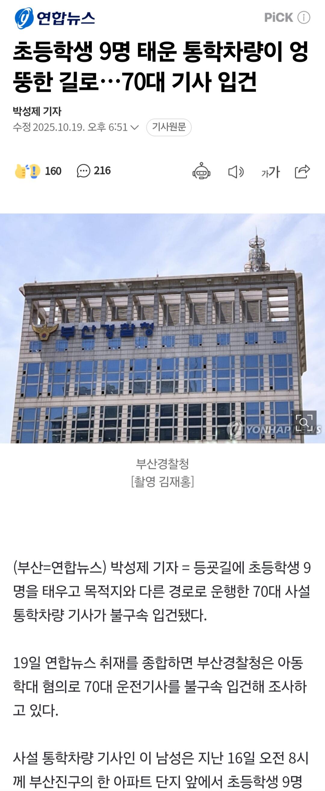 초등생 9명을 태우고 다른곳으로 운행한 70대 운전기사 (커뮤니티 - 자유게시판)