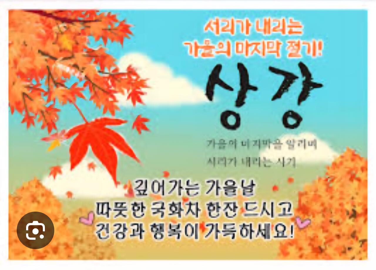 기분좋은 목요일 아침입니다. 서리가 내리는 상강입니다. 건강관리 잘하시고 행복한 하루 보내세요.